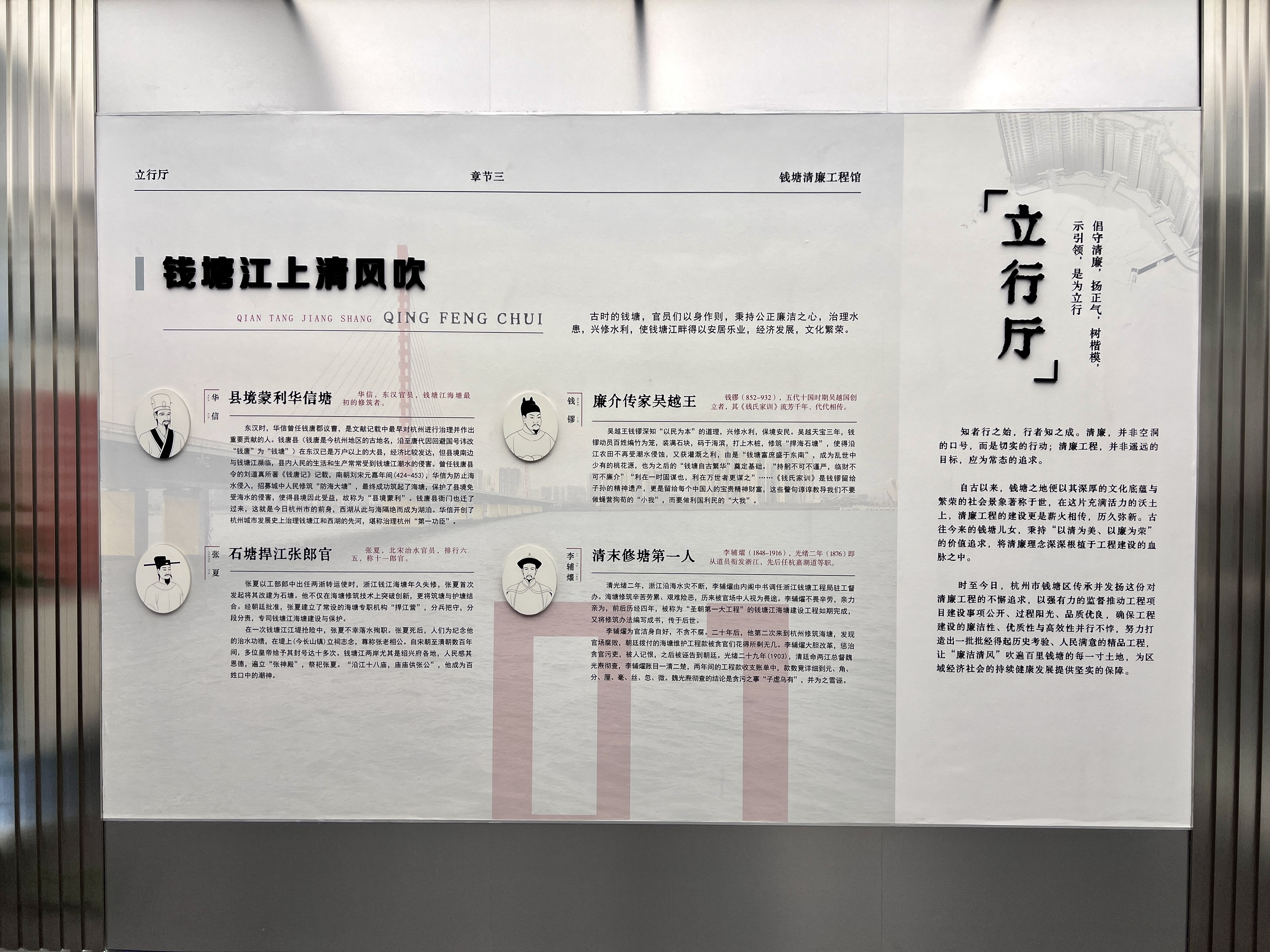 紧接着,钱塘工程馆位于杭州市钱塘区,触发参不雅者揽镜自照。让人深刻感遭到工程带来的严沉后果。钱塘工程馆正在三个月时间内吸引了省市区各级机关、企事业单元148个团队、5148人次前来参不雅进修,进入第二展厅立戒厅,以廉立心。参不雅者沿梯而上,